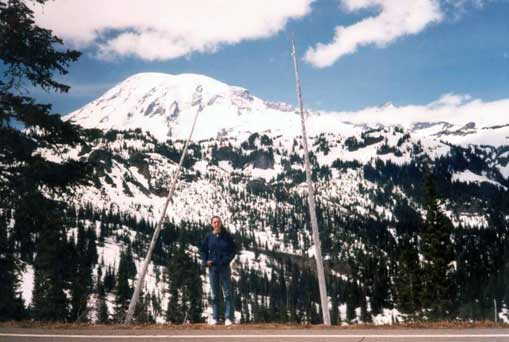 Hiking at Mount Rainier in Seattle during a research visit.